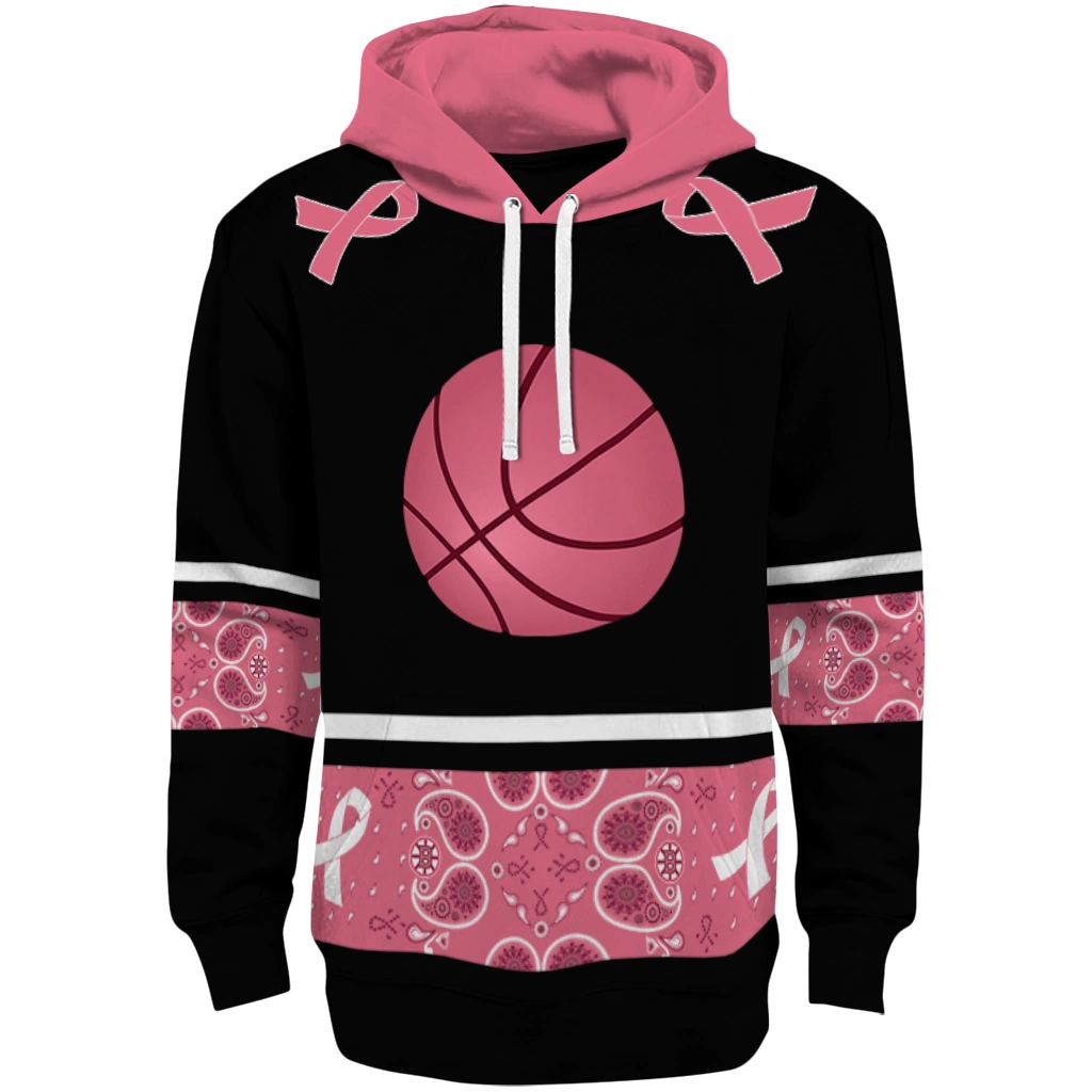 Basketball Logo Hoodie – Awareness Ribbon Black Pink