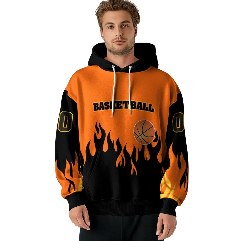 Basketball Logo Hoodie – Personalized Flame Edge Orange Black