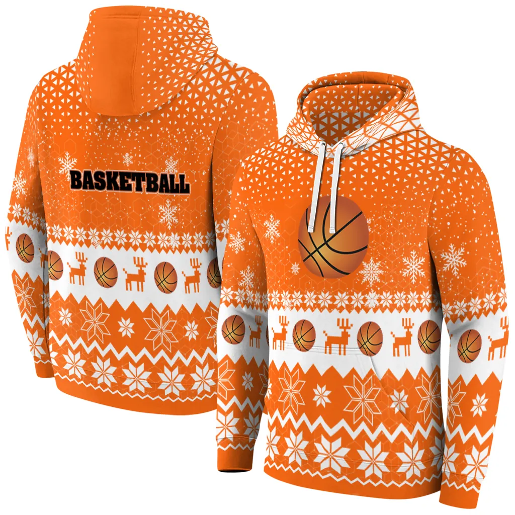 Basketball Logo Hoodie – Reindeer Motif Orange