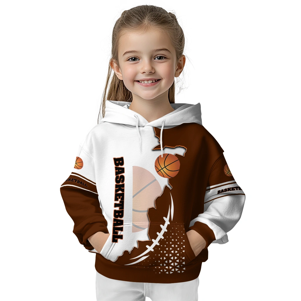 Basketball Logo Hoodie – Triangular Pattern Orange White