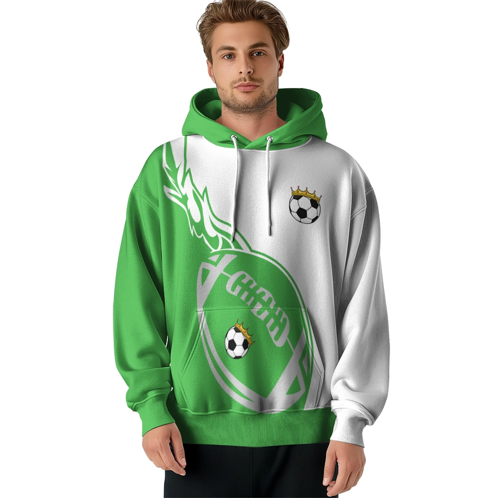 The Soccer With Crown Hoodie – Flaming Football Green is your new essential for game day and every day. It delivers the perfect mix of team pride, cozy comfort, and sharp style. Made with durable, soft fabric and featuring a vibrant all-over print, this hoodie is a must-have for any fan. It’s built to keep you warm and looking great, whether you’re at the stadium or just relaxing. Don’t wait—show off your team spirit!