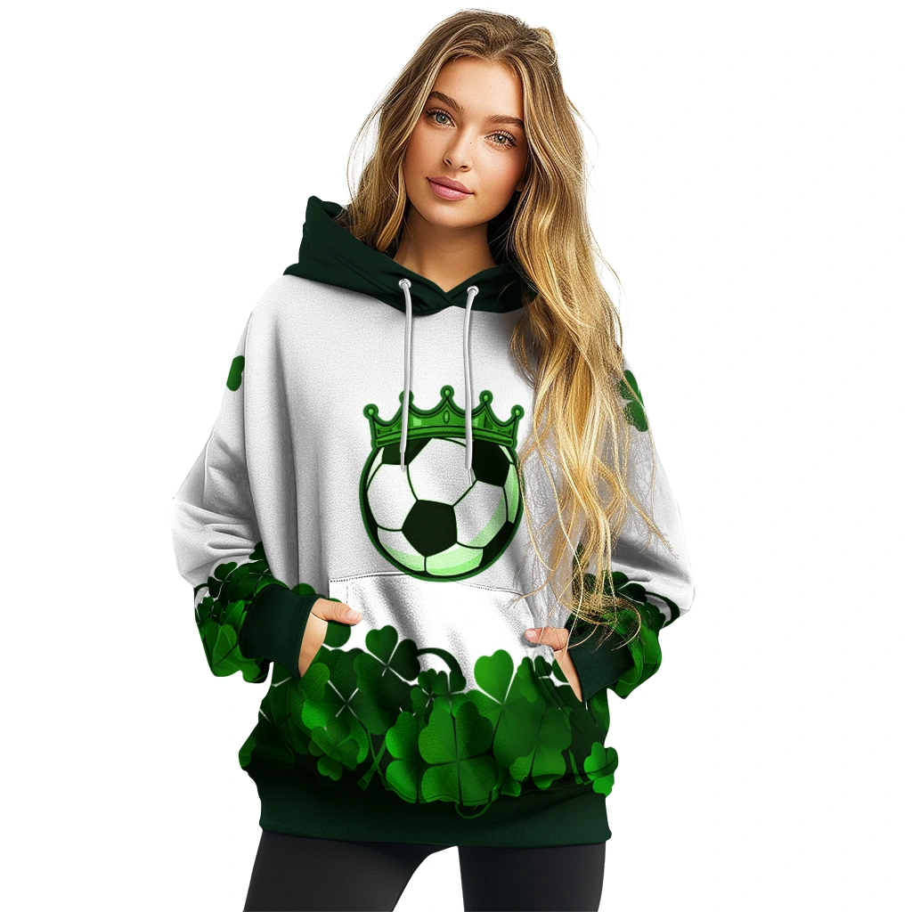 The Soccer With Crown Hoodie – Lucky Motif White Green is your new essential for game day and every day. It delivers the perfect mix of team pride, cozy comfort, and sharp style. Made with durable, soft fabric and featuring a vibrant all-over print, this hoodie is a must-have for any fan. It’s built to keep you warm and looking great, whether you’re at the stadium or just relaxing. Don’t wait—show off your team spirit!