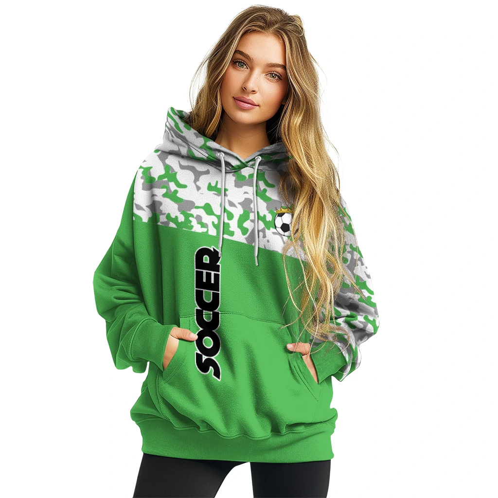 Soccer With Crown Hoodie – Personalized Camo Pattern Green