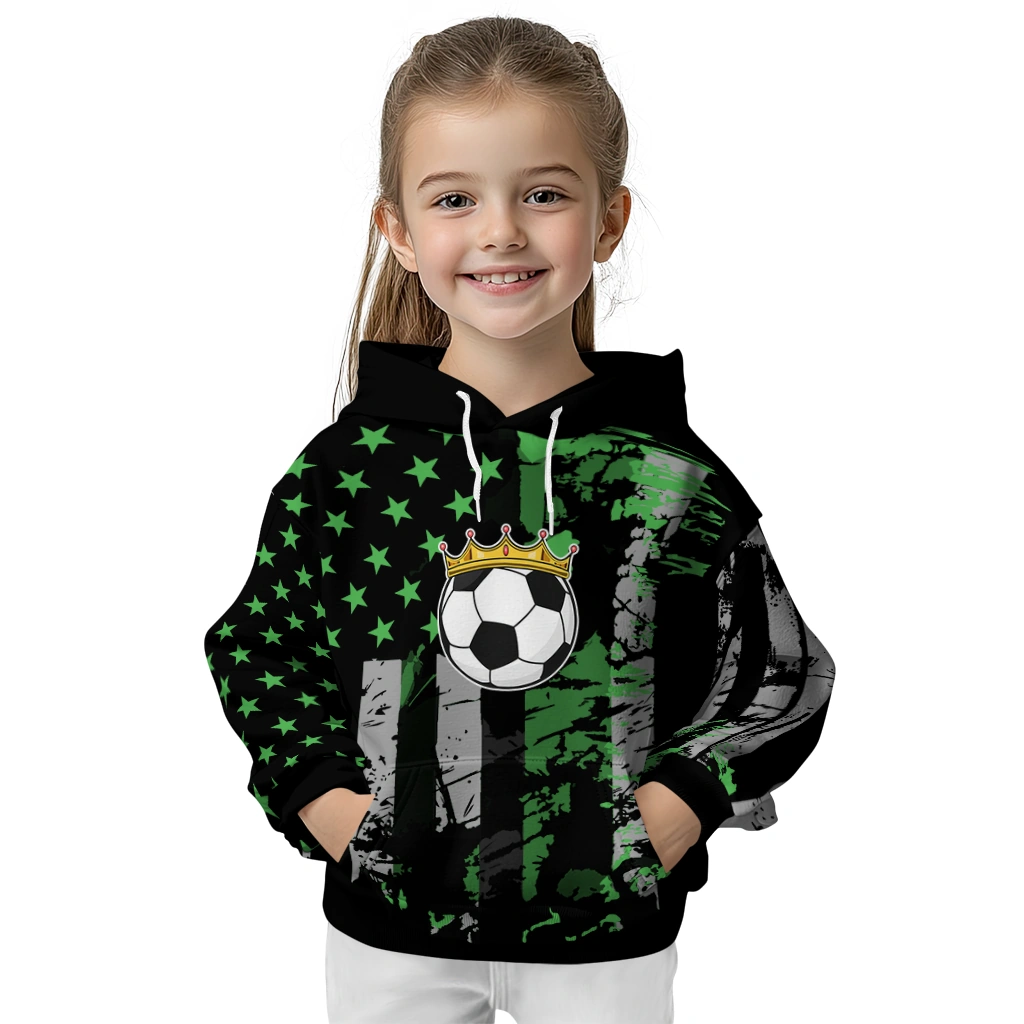 Soccer With Crown Hoodie – Personalized Distressed Flag Green Black
