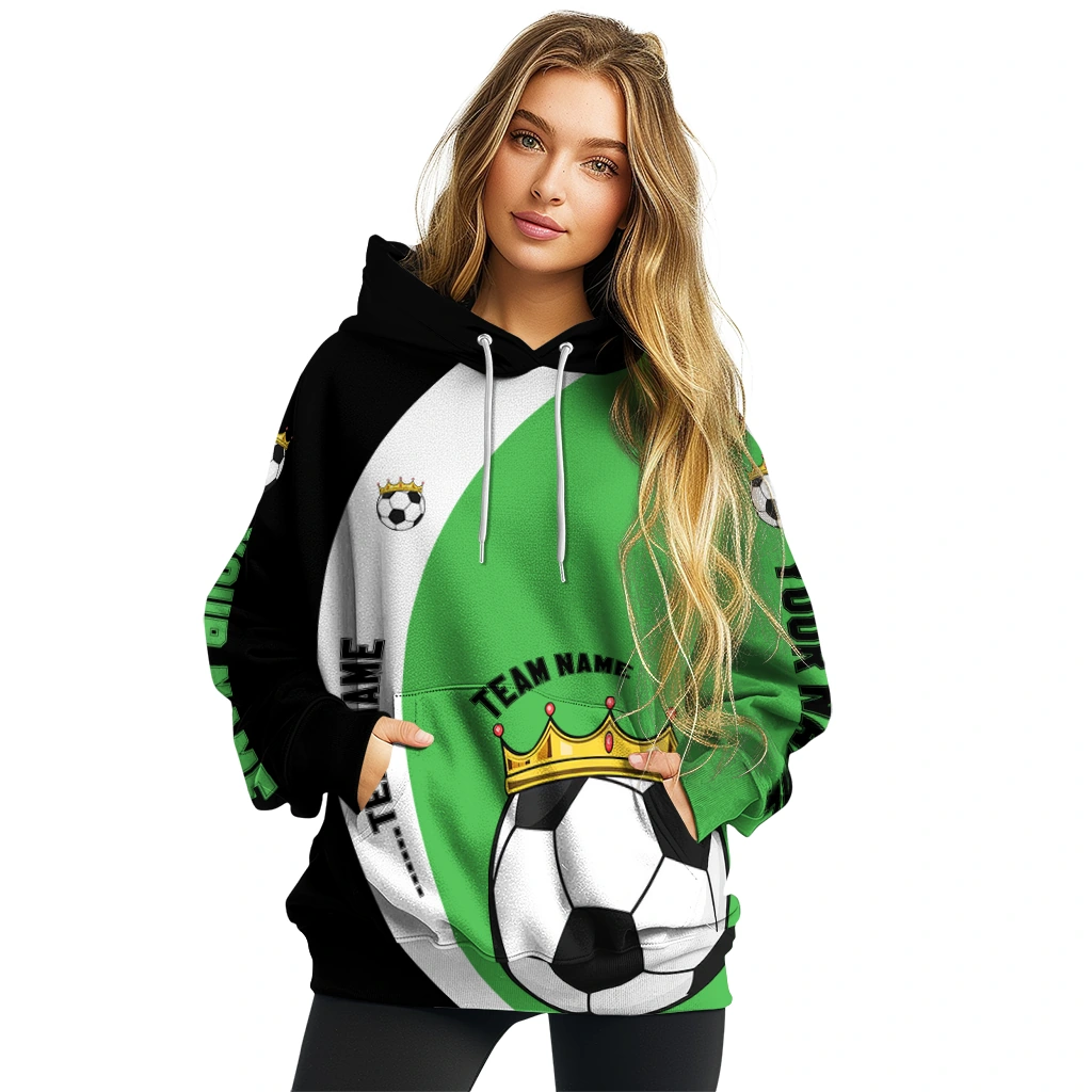 Soccer With Crown Hoodie – Personalized Minimalist Design Green Black
