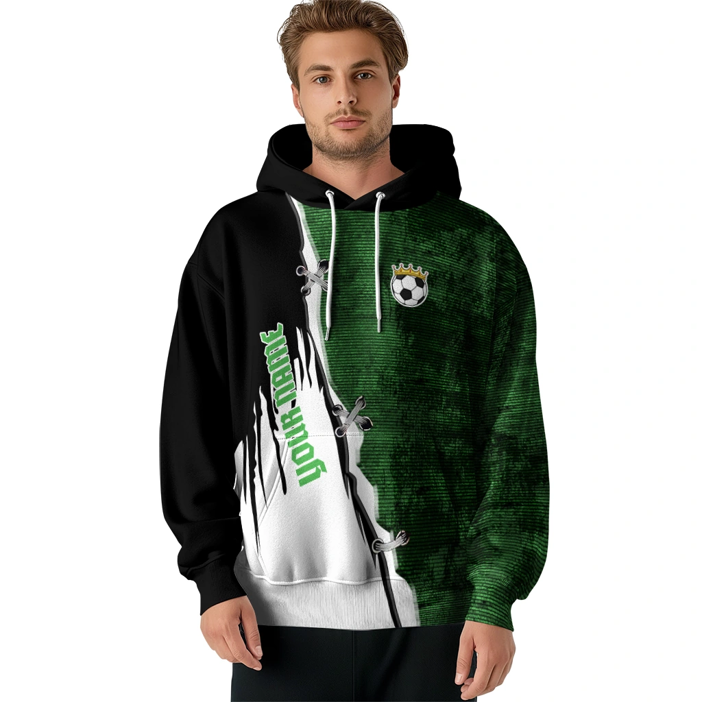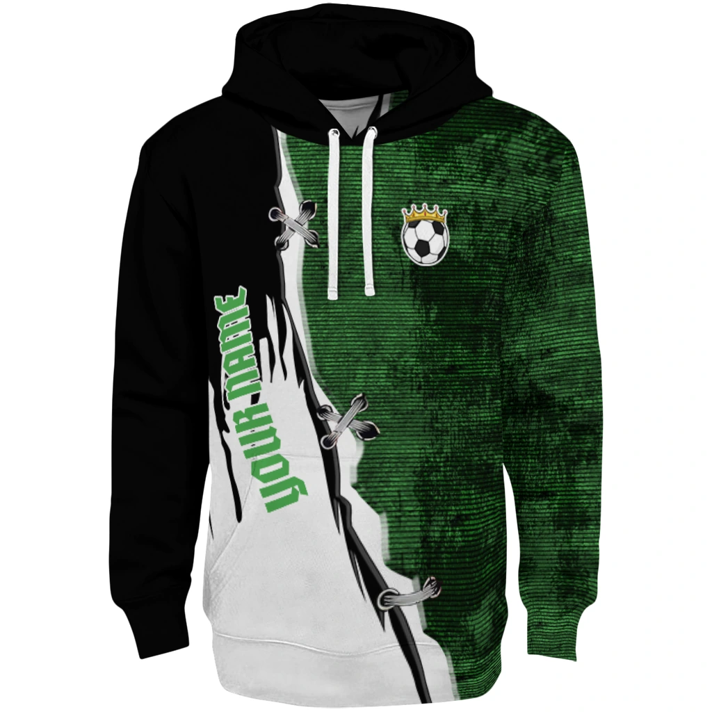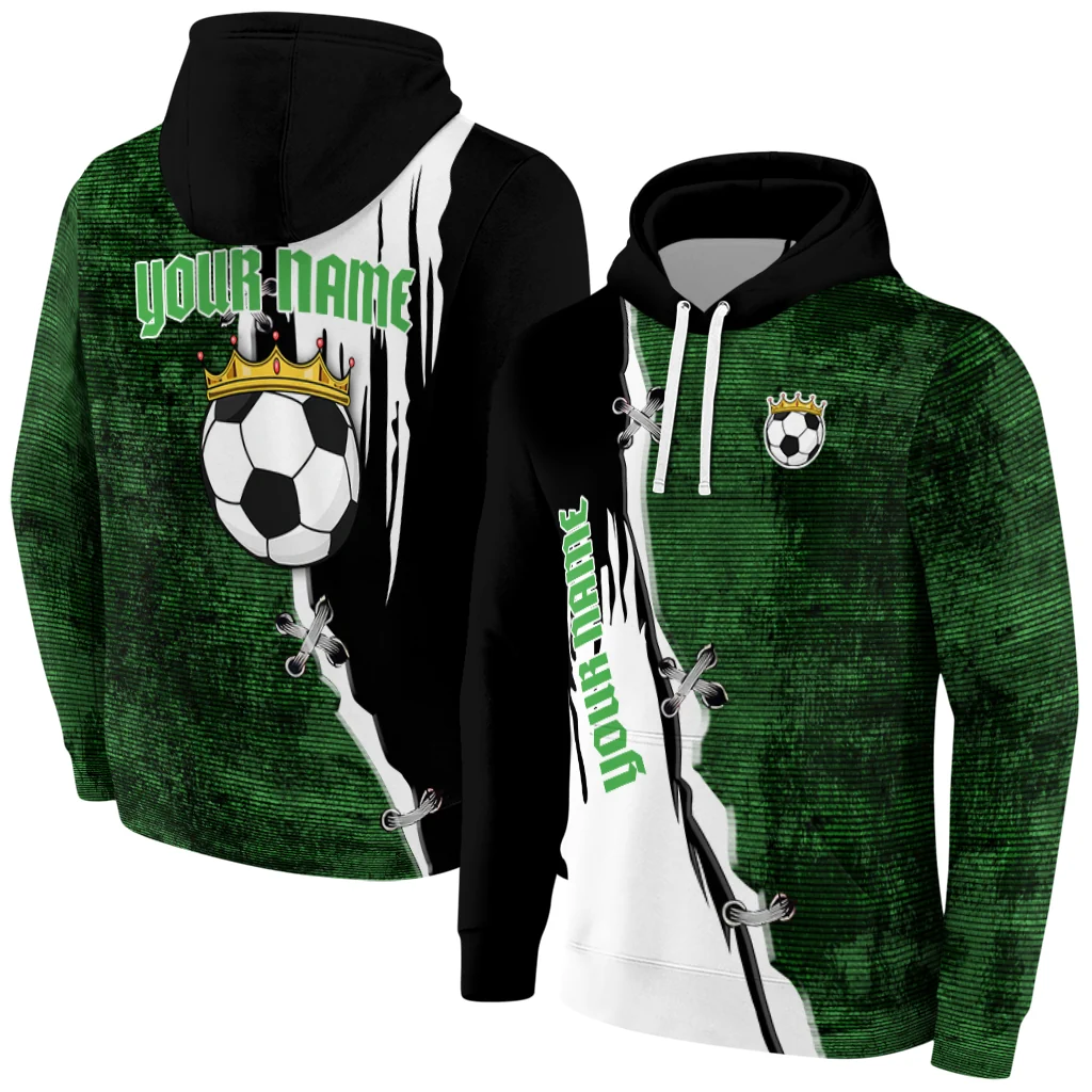 Soccer With Crown Hoodie – Personalized Ripped Pattern Green Black White