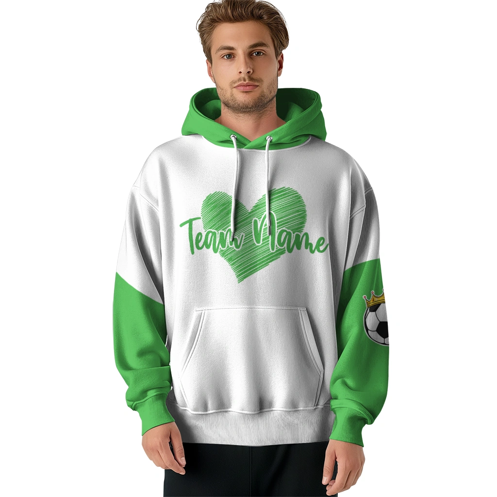 Soccer With Crown Hoodie – Personalized Scribble Heart Green White