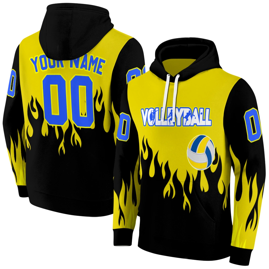 Volleyball Logo Hoodie – Customized Flame Edge Yellow Black