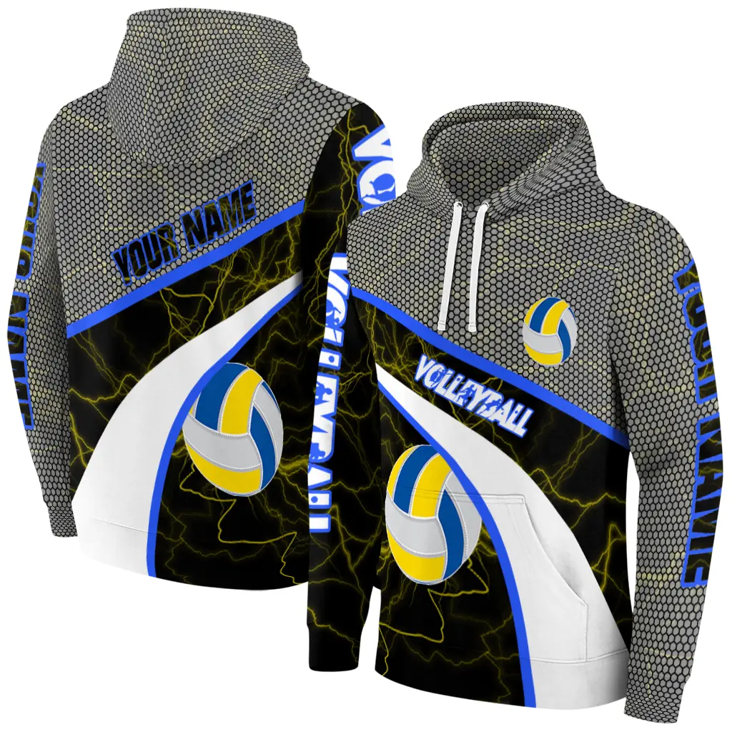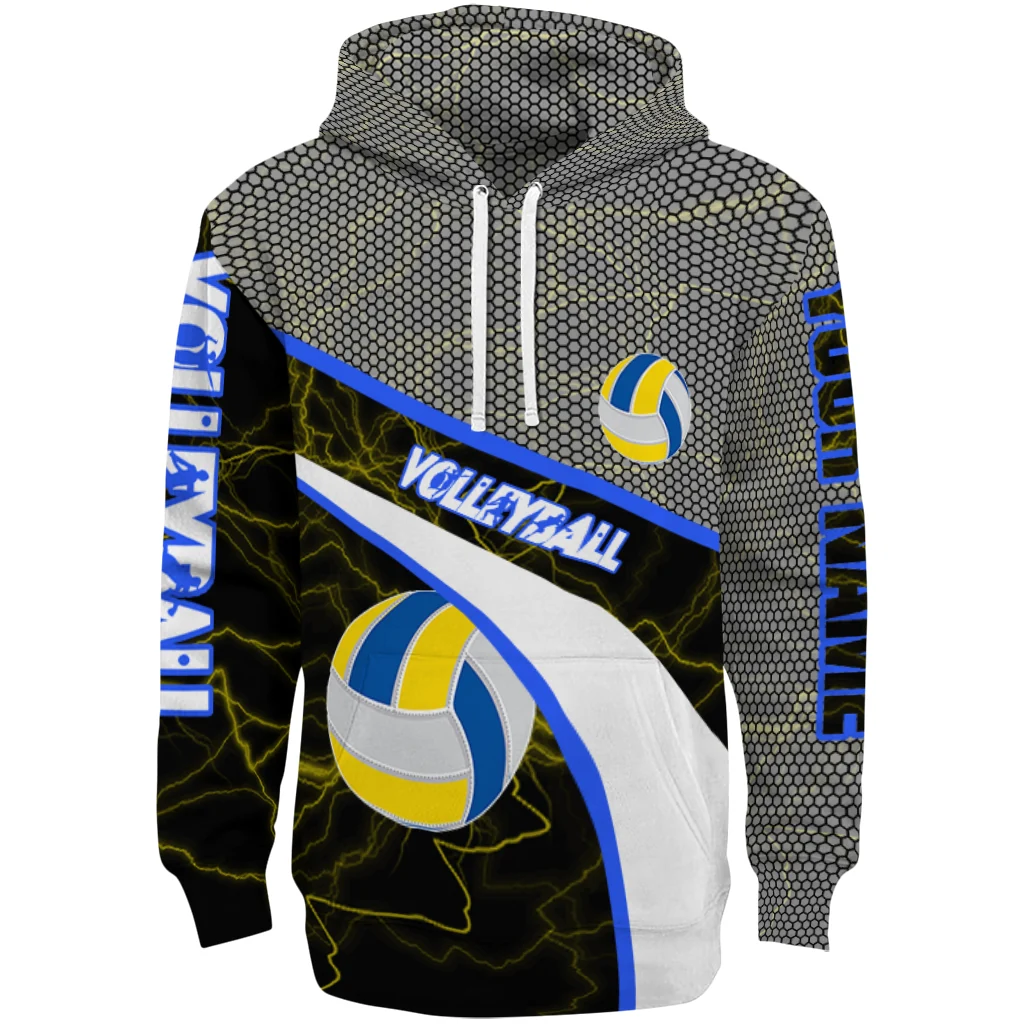 Volleyball Logo Hoodie – Customized Hexagonal Mesh Yellow Black Gray