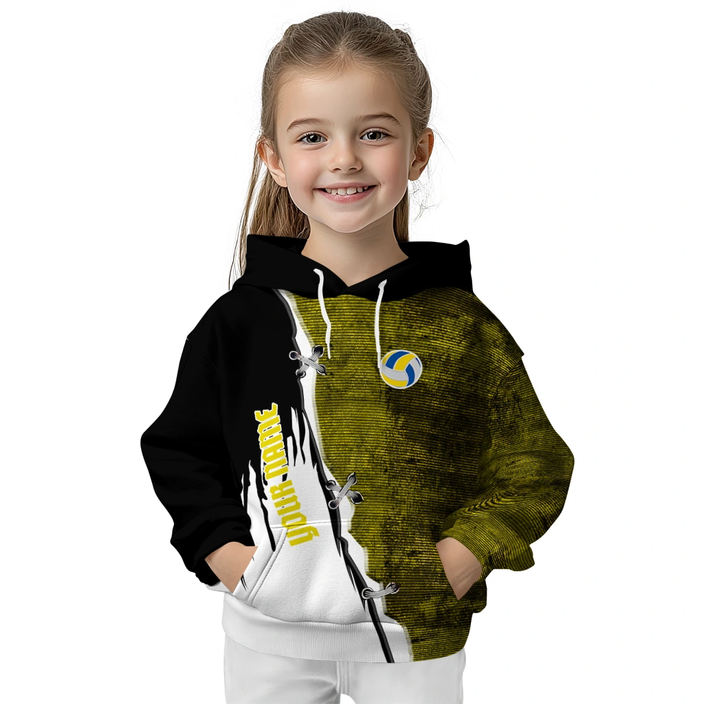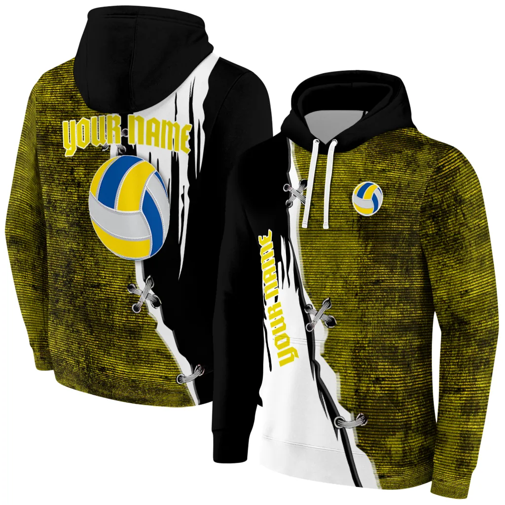 Volleyball Logo Hoodie – Customized Ripped Pattern Yellow Black White