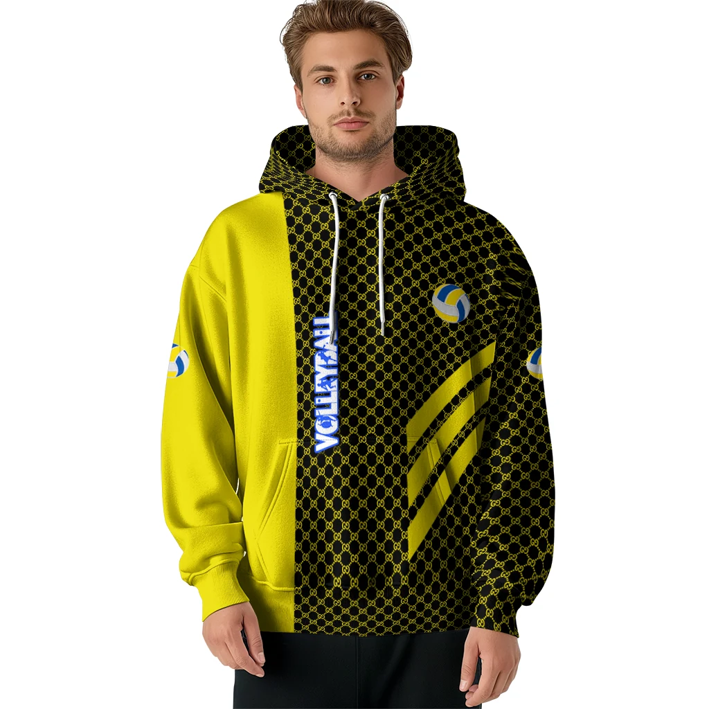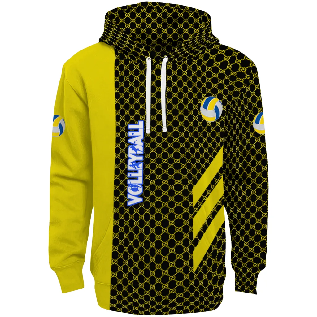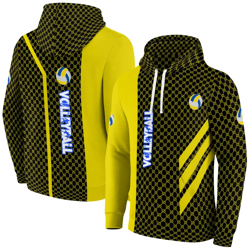 Volleyball Logo Hoodie – Monogram Pattern Yellow